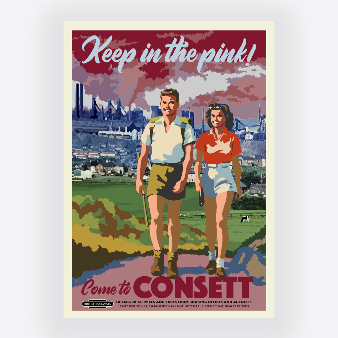 Chris Donald, creator of the renowned VIZ comic, presents a series of reimagined transport posters that humorously depict local holiday spots. Known for his wit and keen observations on British culture